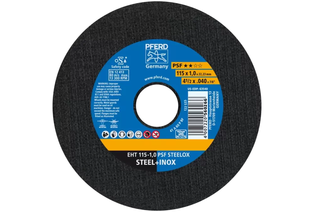 Ściernica tarczowa do cięcia EHT 115 × 1,0 × 22,23 mm prosta linia uniwersalna PSF STEELOX do stali/stali szlachetnej