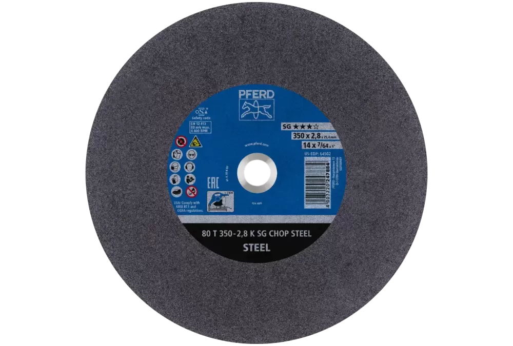 Asortyment produktów PFERD oferuje ściernice do przecinania do pił do cięcia metalu (CHOPSAW) w różnych wersjach i rozmiarach. Ściernice do przecinania do pił do cięcia metalu wykorzystywane są do cięcia pełnego materiału, profili i rur.