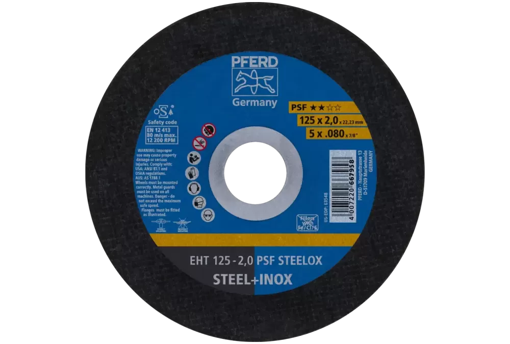 Ściernica tarczowa do cięcia EHT 125 × 2,0 × 22,23 mm prosta linia uniwersalna PSF STEELOX do stali/stali szlachetnej