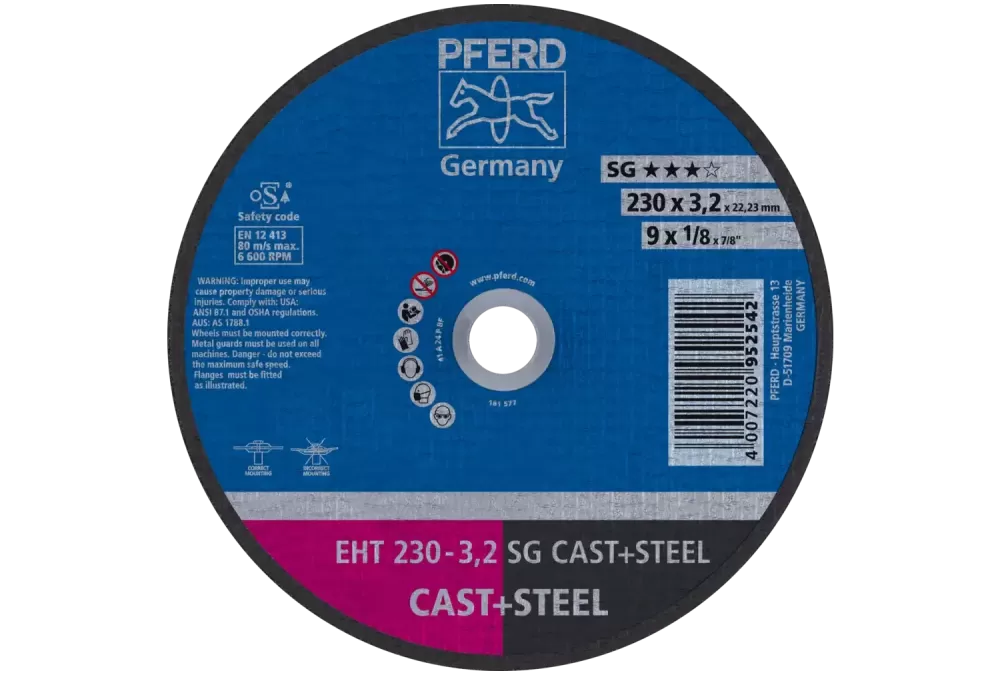Do bardzo ciężkich prac w odlewniach PFERD opracował ściernice tarczowe do cięcia, odpowiadające wysokim standardom bezpieczeństwa i jakości. Są one zoptymalizowane pod kątem zastosowania na pneumatycznych szlifierkach kątowych z silnikiem turbinowym oraz szlifierkach kątowych wysokiej częstotliwości.