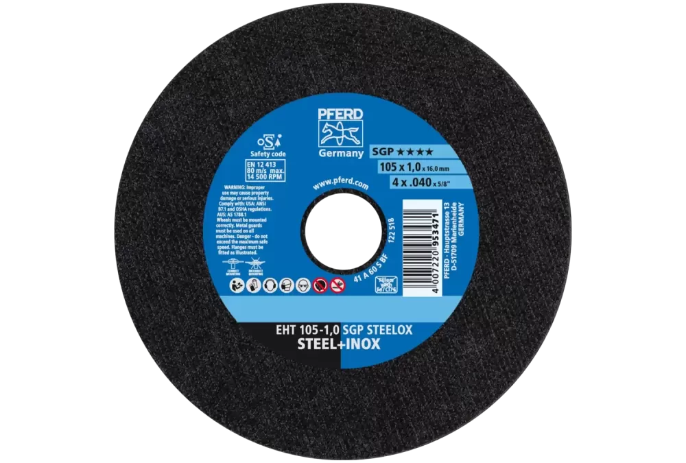 Ściernica tarczowa do cięcia EHT 105 × 1,0 × 16 mm prosta linia specjalna SGP STEELOX do stali/stali szlachetnej