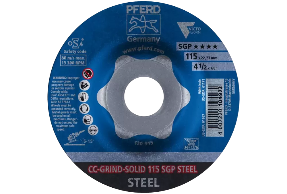 Ściernica tarczowa CC-GRIND SOLID 115 × 22,23 mm COARSE, linia specjalna SGP STEEL do stali