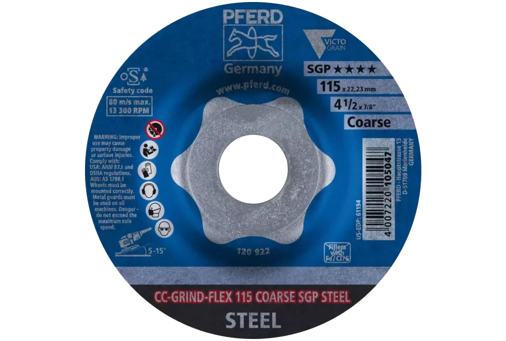Ściernica tarczowa CC-GRIND FLEX 115 × 22,23 mm COARSE, linia specjalna SGP STEEL do stali