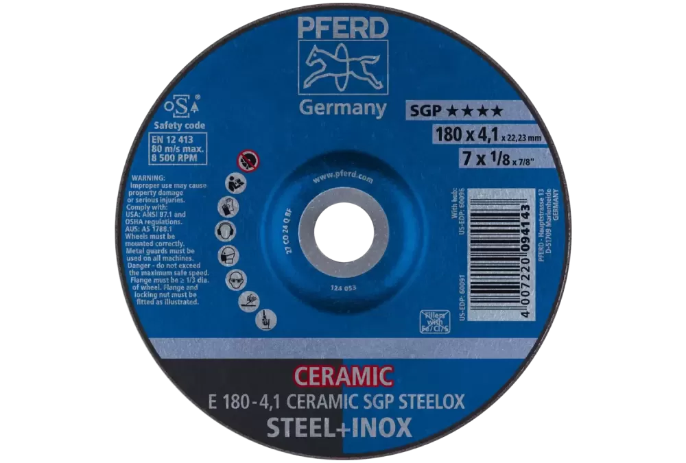 Ściernica tarczowa do zdzierania E 180 × 4,1 × 22,23 mm CERAMIC linia wydajna SG STEELOX do stali/stali nierdzewnej