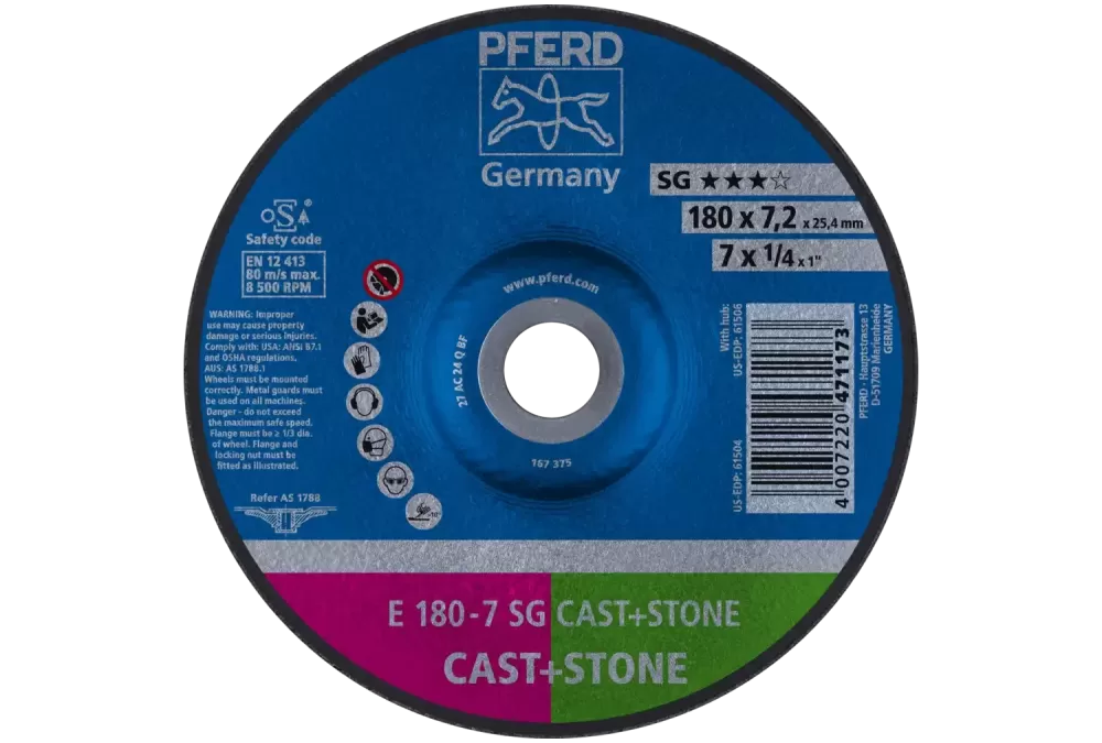 Do wysoce ciężkich prac w odlewniach PFERD opracował ściernice tarczowe do zdzierania, odpowiadające wysokim standardom bezpieczeństwa i jakości. Są one zoptymalizowane pod kątem zastosowania na pneumatycznych szlifierkach kątowych z silnikiem turbinowym oraz szlifierkach kątowych wysokiej częstotliwości.