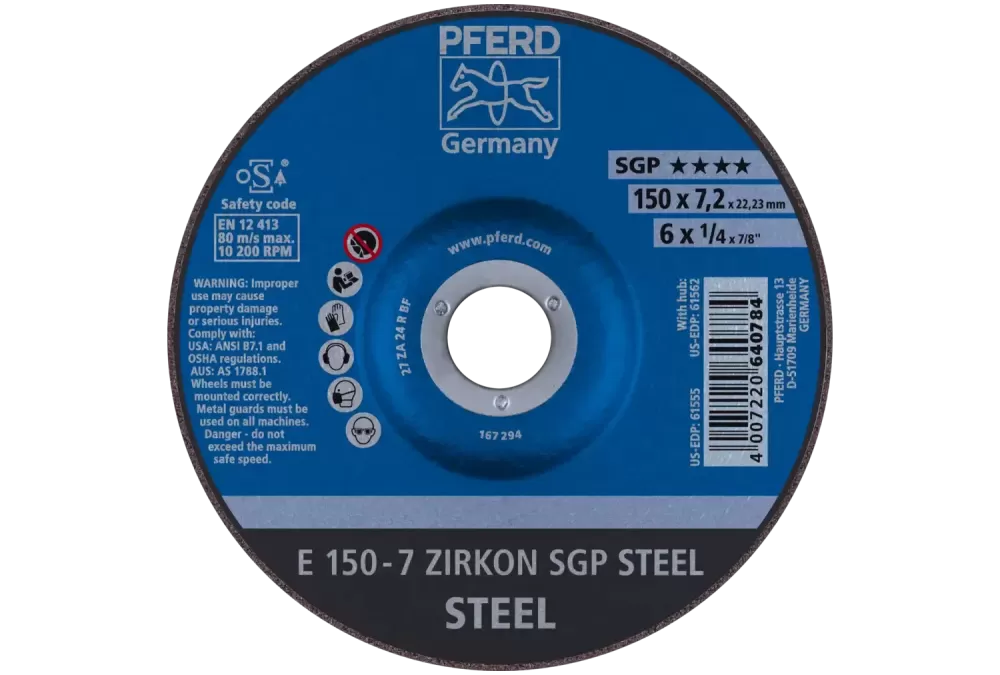 Ściernica tarczowa do zdzierania E 150 × 7,2 × 22,23 mm ZIRKON linia specjalna SGP STEEL do stali