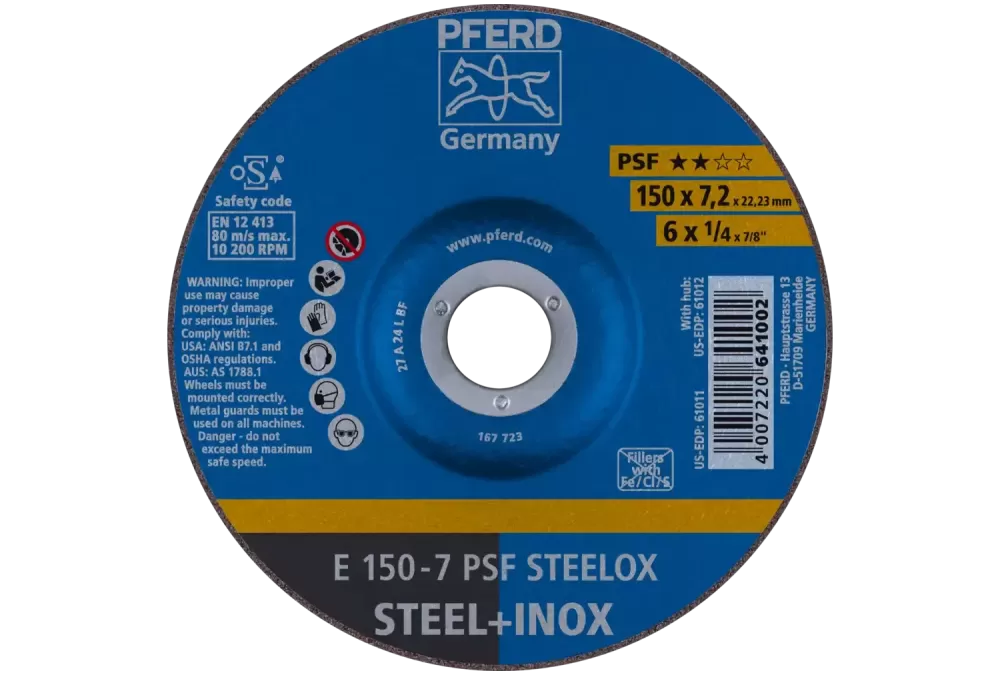 Ściernica tarczowa do zdzierania E 150 × 7,2 × 22,23 mm linia uniwersalna PSF STEELOX do stali/stali nierdzewnej