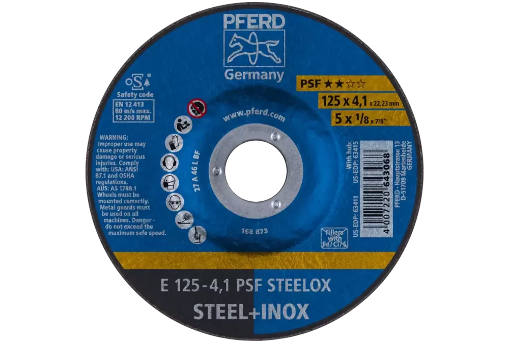 Ściernica tarczowa do zdzierania E 125 × 4,1 × 22,23 mm linia uniwersalna PSF STEELOX do stali/stali nierdzewnej