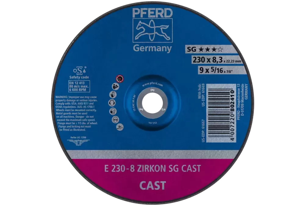 Ściernica tarczowa do zdzierania E 230 × 8,3 × 22,23 mm ZIRKON linia specjalna SGP CAST do żeliwa
