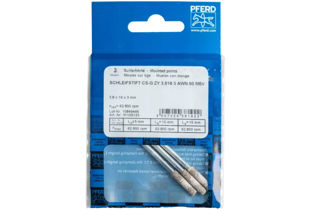 Ściernica trzpieniowa CAIN SHARP CS-G kształt walcowy Ø3,8 × 16 mm trzpień Ø3 mm A80 do ostrzenia łańcuchów pił łańcuchowych