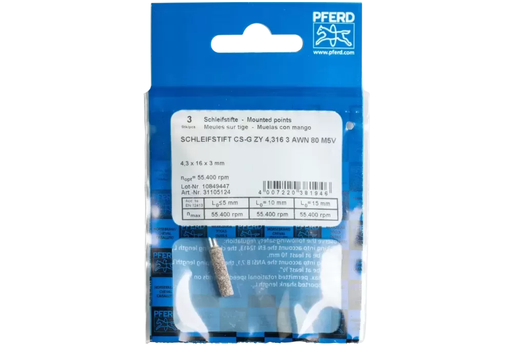 Ściernica trzpieniowa CAIN SHARP CS-G kształt walcowy Ø 4,3 × 16 mm trzpień Ø 3 mm A80 do ostrzenia łańcuchów pił łańcuchowych