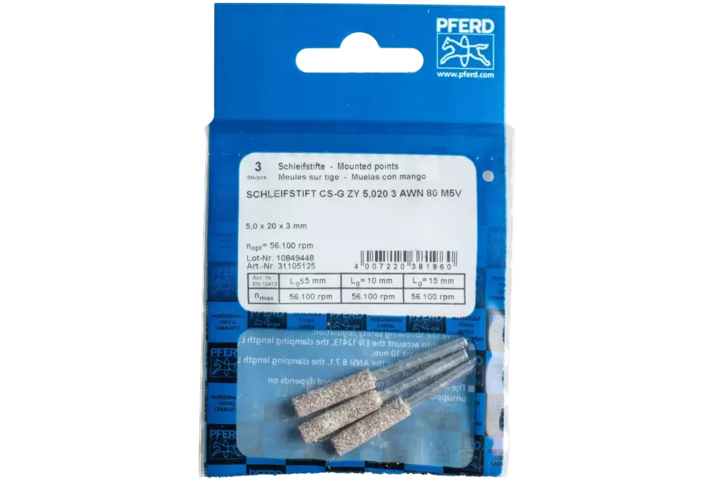 Ściernica trzpieniowa CAIN SHARP CS-G kształt walcowy Ø 5,0 × 20 mm trzpień Ø 3 mm A80 do ostrzenia łańcuchów pił łańcuchowych