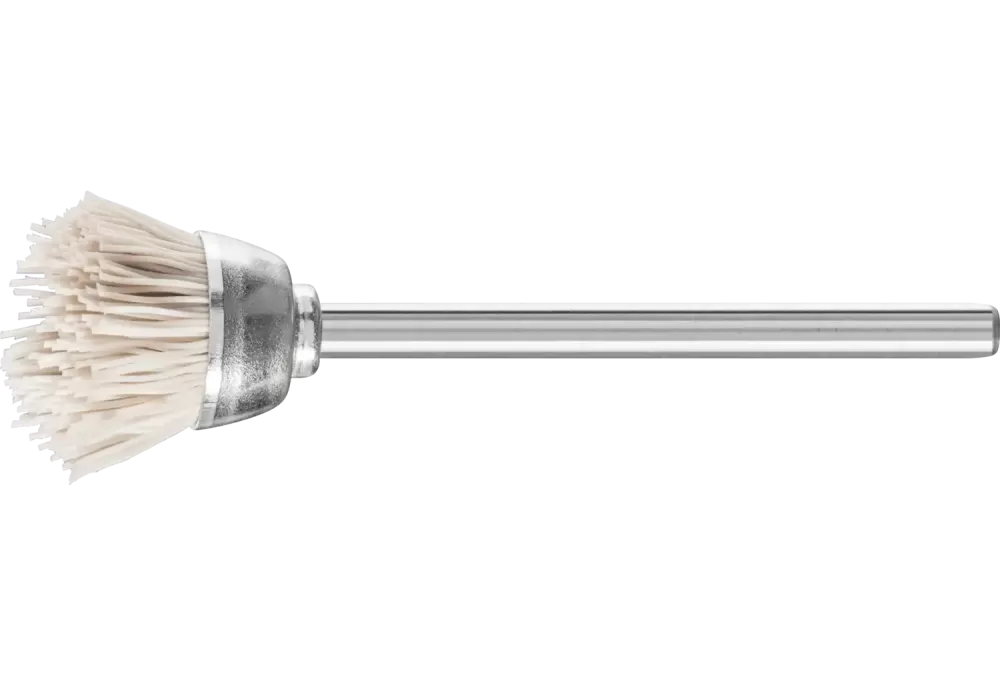 Miniaturowa szczotka garnkowa TBU Ø18 mm trzpień Ø3 mm włókno z tlenku glinu Ø0,30 ziarno 600