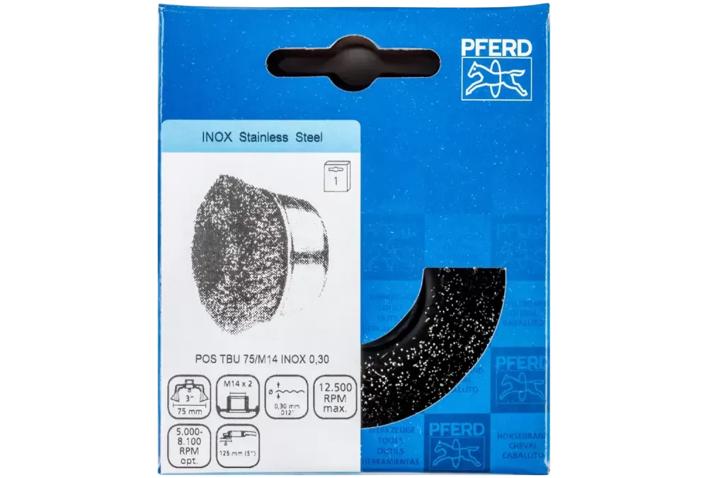 Szczotka garnkowa niepleciona TBU Ø75 mm M14 drut ze stali szlachetnej Ø0,30 do szlifierki kątowej