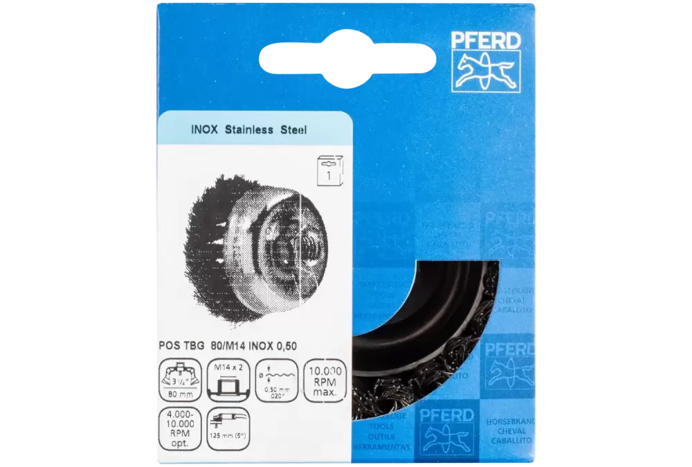 Szczotka garnkowa pleciona TBG Ø 80 mm M14 drut ze stali szlachetnej Ø 0,50 mm do szlifierki kątowej