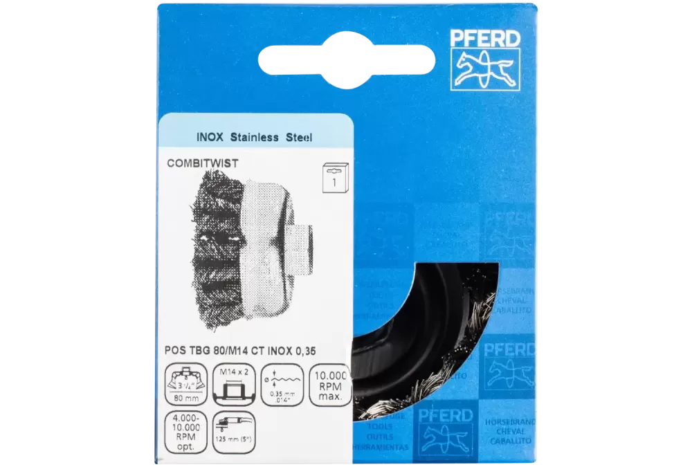 Szczotka garnkowa pleciona COMBITWIST TBG Ø 80 mm M14, drut ze stali nierdzewnej Ø 0,35 mm do szlifierki kątowej