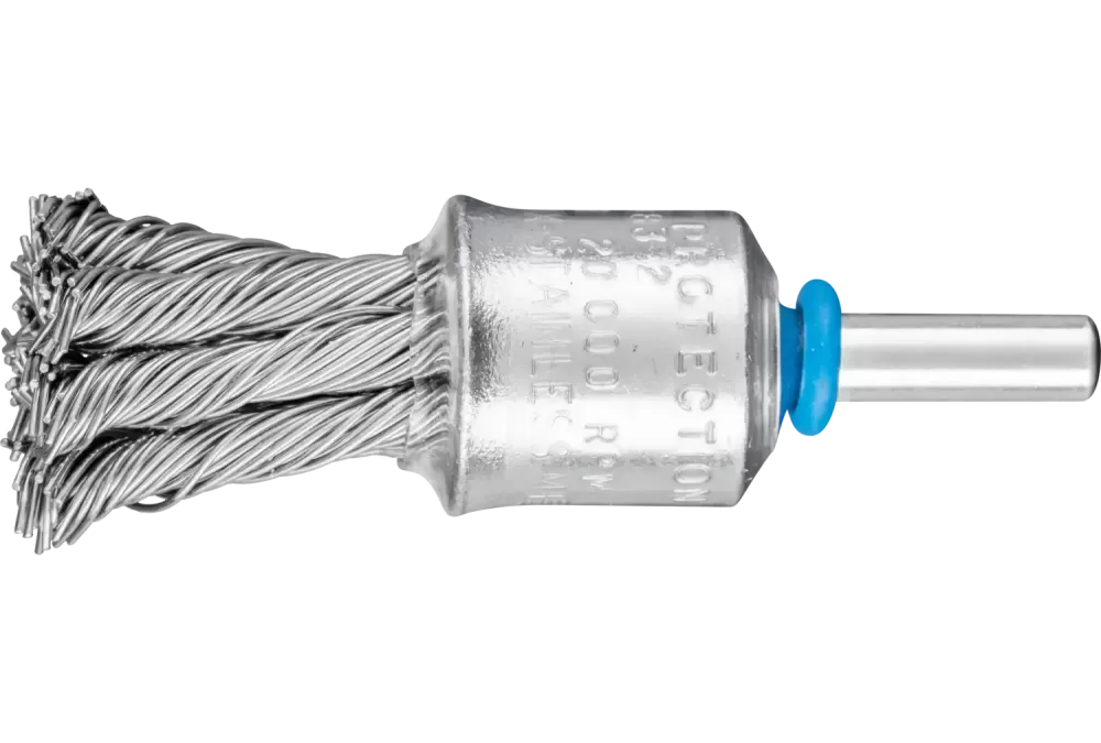 Pleciona szczotka-pędzelek z ochroną z tworzywa sztucznego PBG Ø19 mm trzpień Ø6 mm drut ze stali nierdzewnej Ø0,60