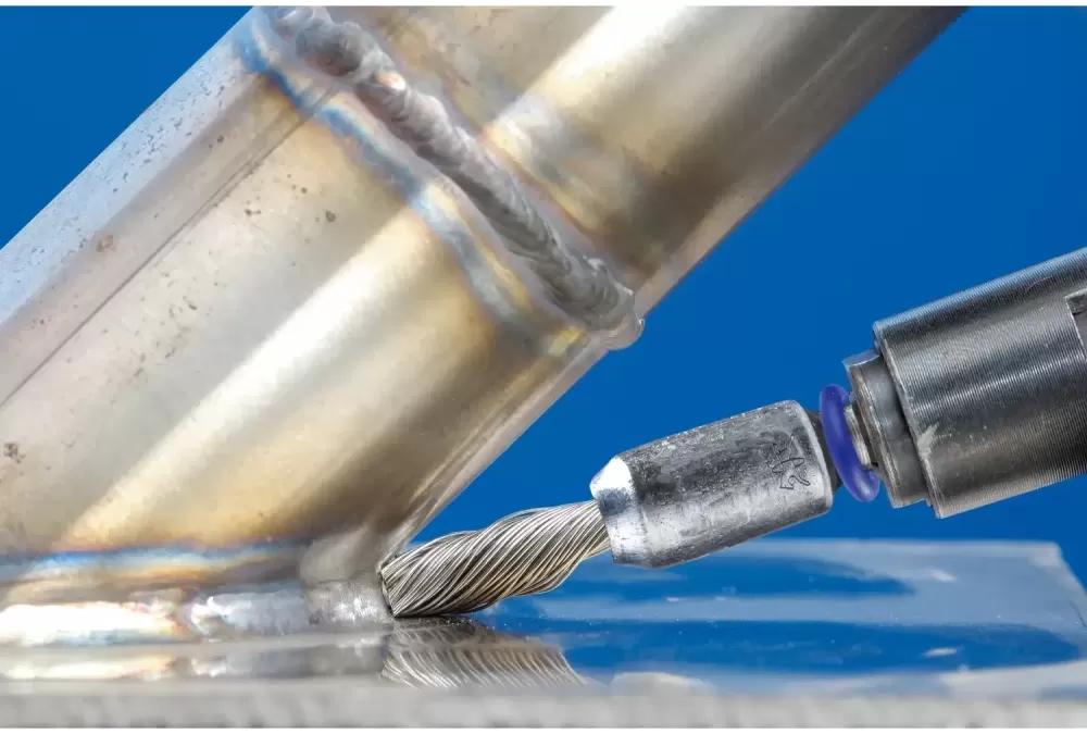 • Optymalnie dociera do trudno dostępnych miejsc, ponieważ splot wykonany jest w odwrotnym kierunku niż praca, co uniemożliwia rozchodzenie się drutu podczas obróbki.