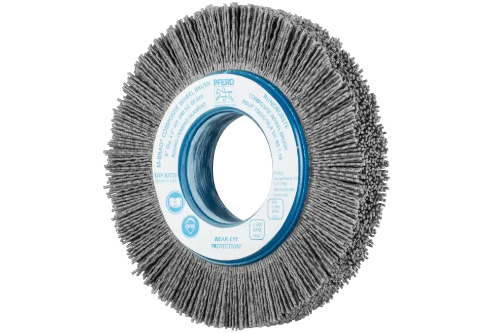 SZCZOTKI KOMPOZYTOWE tarczowe RBUP Ø 150 x 25 x 50,8 mm włókno SiC do otworu Ø 1,10 mm, ziarno 80, stacjonarne