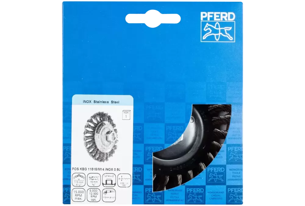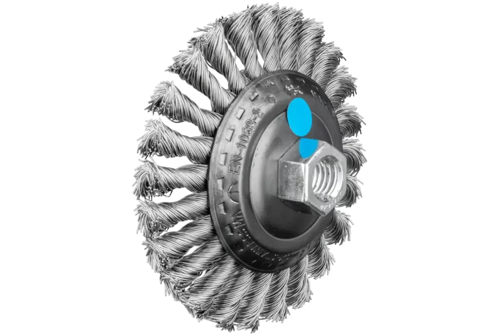 Szczotka stożkowa pleciona KBG Ø 115 × 15 mm M14 drut ze stali nierdzewnej Ø 0,50 mm do szlifierki kątowej