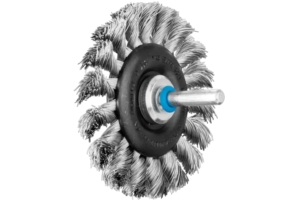Szczotka tarczowa pleciona RBG Ø76 × 12 mm trzpień Ø6 mm drut ze stali nierdzewnej Ø0,35