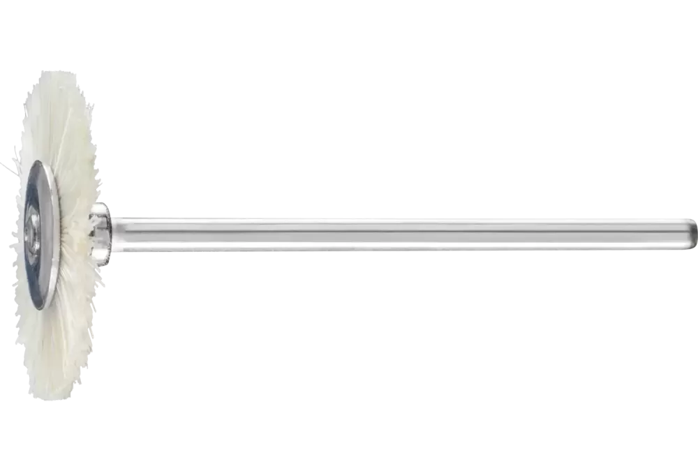 Miniaturowa szczotka tarczowa RBU Ø22 × 2 mm trzpień Ø2,34 mm biała szczecina