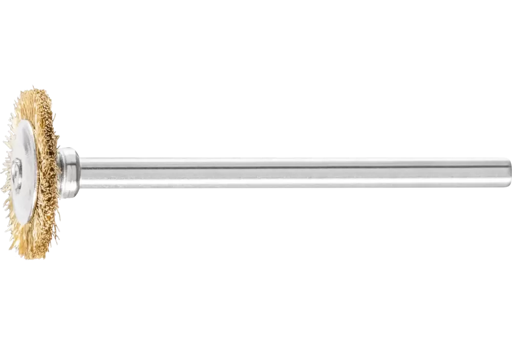 Miniaturowa szczotka tarczowa RBU Ø16 × 2 mm trzpień Ø3 mm drut mosiężny Ø0,10