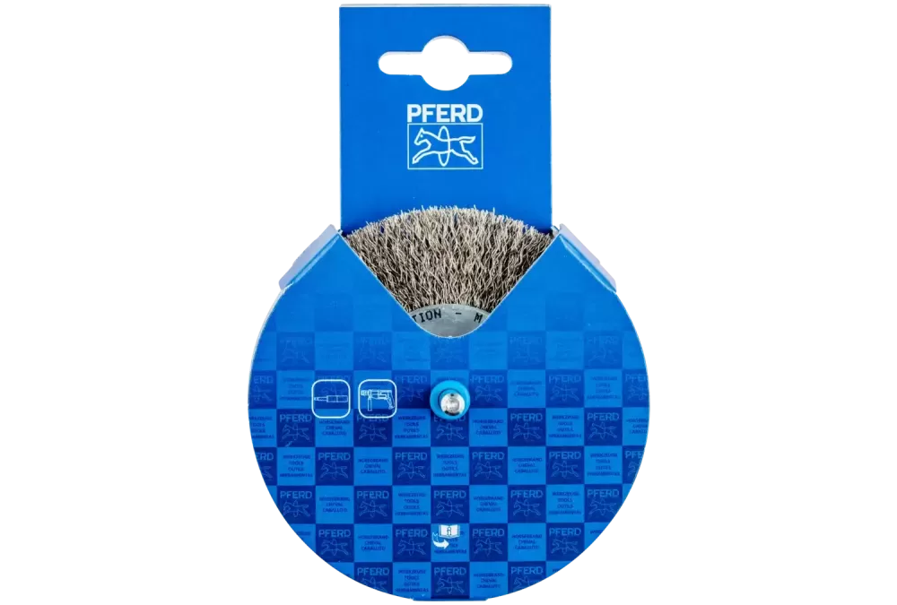 Aby móc sprostać stawianym wymaganiom obróbczym w zakresie stali szlachetnej (INOX), firma PFERD przy produkcji szczotek ze stali INOX używa drutu 1.4310 (V2 A). Doświadczenia z wcześniejszych praktyk potwierdzają, że ten rodzaj drutu gwarantuje odporność na korozję przy optymalnej żywotności. Wszystkie szczotki PFERD z drutem INOX są oznaczone na niebiesko i nadają się do użycia na wysokostopowej stali szlachetnej (INOX), np. V4 A. Drut 1.4310 podczas utwardzania nabiera ferromagnetycznych właściwości, tzn. jest przyciągany przez magnesy. Jest to spowodowane zmianą strukturalną wywoływaną przez przeformowanie, np. w procesie ciągnienia. Nie ma to jednak wpływu na jakość ani odporność na korozję wypełnienia INOX. Drut zachowuje swoją odporność na korozję.|Jest to spowodowane zmianą strukturalną wywoływaną przez przeformowanie, np. w procesie ciągnienia. Nie ma to jednak wpływu na jakość ani odporność na korozję wypełnienia INOX. Drut utrzymuje swoje odporne na korozję właściwości.