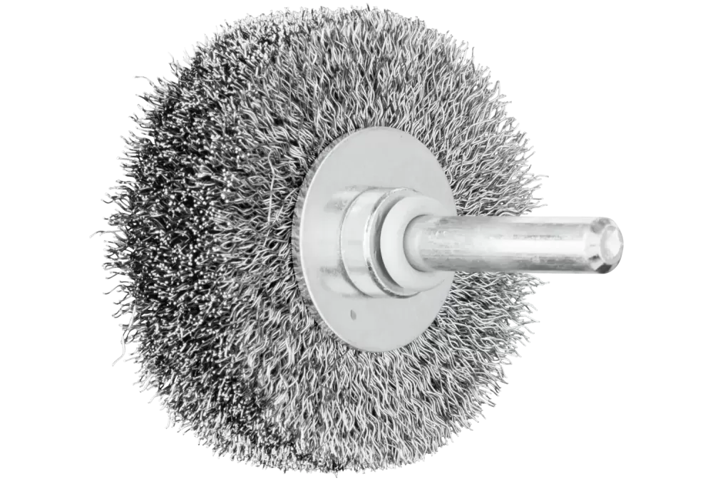 Szczotka tarczowa niepleciona POS RBU Ø50 × 15 mm trzpień Ø6 mm drut stalowy Ø0,20