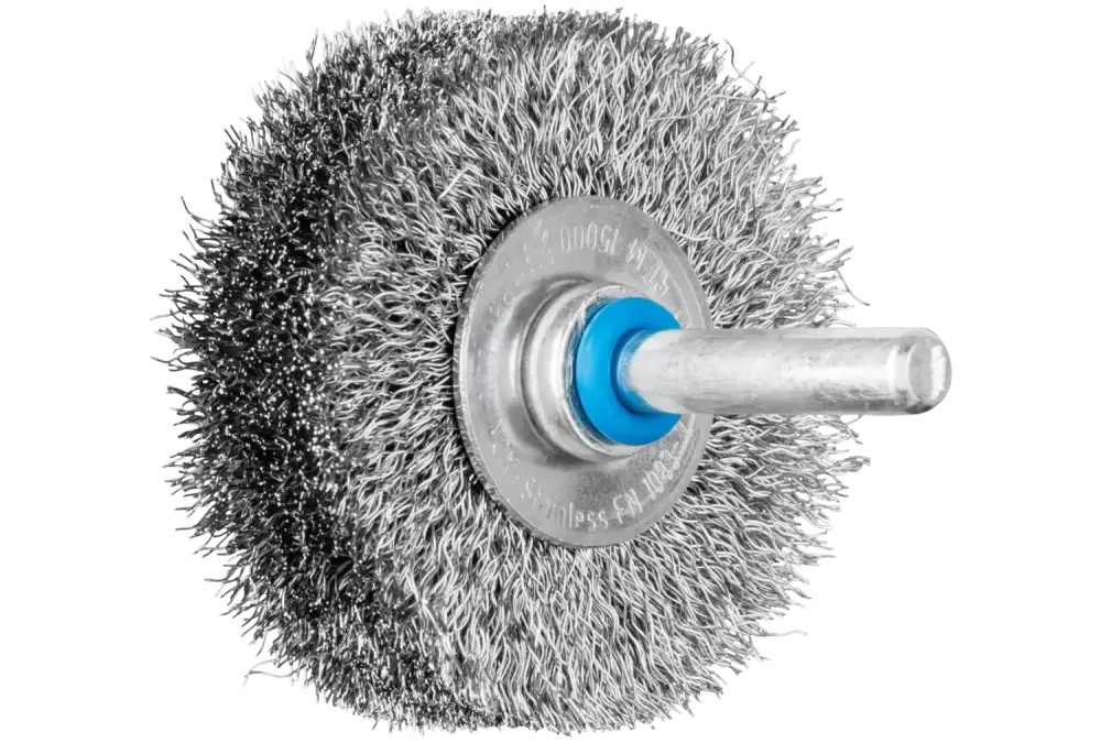 Szczotka tarczowa niepleciona POS RBU Ø50 × 15 mm trzpień Ø6 mm drut ze stali nierdzewnej Ø0,20