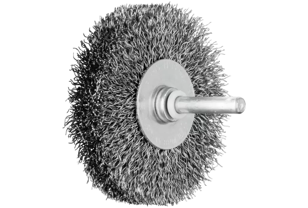 Szczotka tarczowa niepleciona POS RBU Ø70 × 15 mm trzpień Ø6 mm drut stalowy Ø0,30
