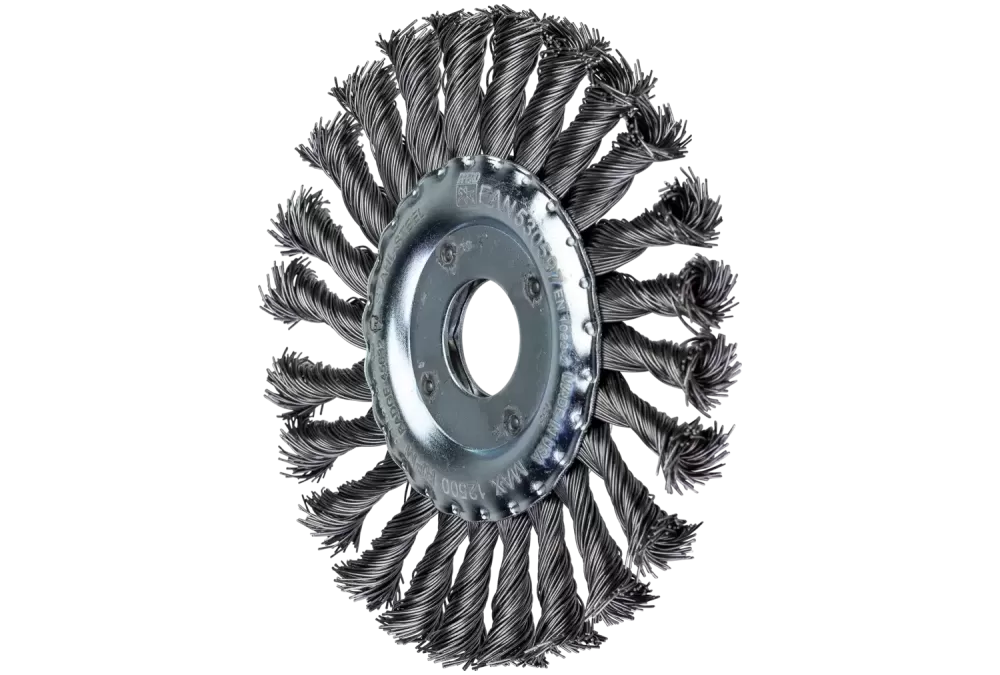 Szczotka tarczowa pleciona RBG Ø 125 × 12 × 22,2 mm, drut stalowy Ø 0,50 mm do szlifierki kątowej