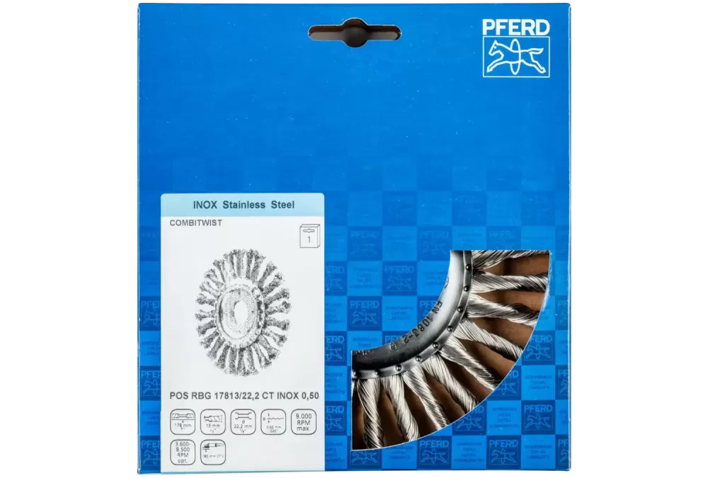 Szczotka tarczowa pleciona COMBITWIST RBG Ø 178 × 13 × 22,2 mm, drut ze stali nierdzewnej Ø 0,50 mm do szlifierki kątowej