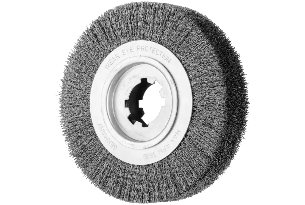 Szczotka do usuwania gratów, niepleciona RBU Ø 250 × 60 × 50,8, otwór, drut stalowy Ø 0,35 mm, stacjonarna