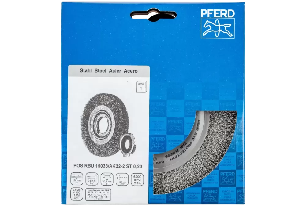 Szczotka tarczowa szeroka niepleciona RBU Ø 150 × 38x różne otwory drut stalowy Ø 0,20 szlifierka stacjonarna