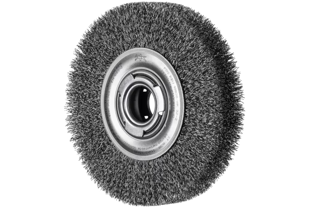 Szczotka tarczowa szeroka niepleciona RBU Ø 180 × 38x różne otwory drut stalowy Ø 0,30 szlifierka stacjonarna