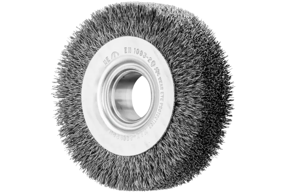 POS szczotka okrągła szeroka niepleciona RBU Ø 80 x 20 × różne otwory, drut stalowy Ø 0,20, do szlifierek stacjonarnych