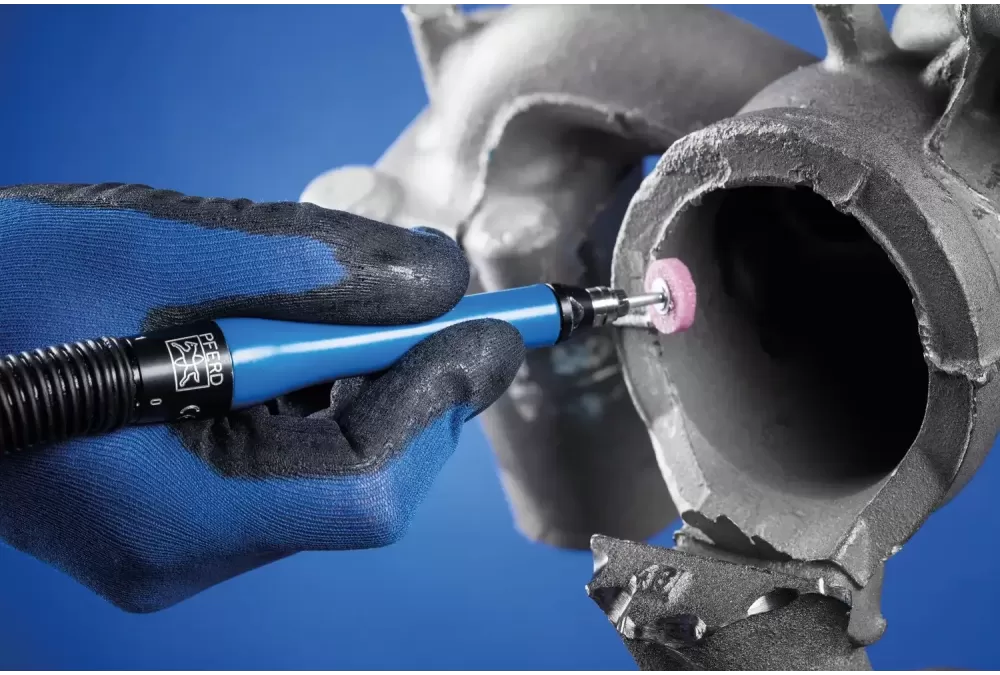 • Dzięki wysokiej prędkości obrotowej napęd posiada wysoką prędkość skrawania do frezów węglikowych trzpieniowych i ściernic trzpieniowych.