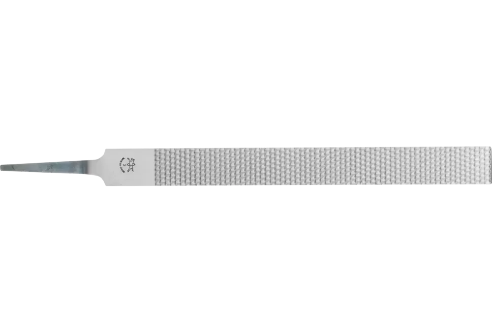 Pilnik prostokątny z nacięciami z trzech stron, płaskie boki z nacięciem raszplowym, jedna strona z nacięciem pilnikowym, jedna strona bez nacięć. Kształt A wg normy DIN 7263. Wykonanie z chwytem.