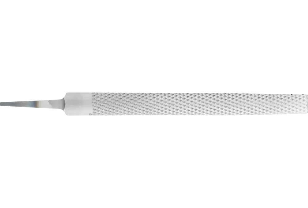 Pilnik półokrągły, zbieżny, z nacięciem raszplowym z dwóch stron. Kształt C wg normy DIN 7263. Wykonanie z chwytem.