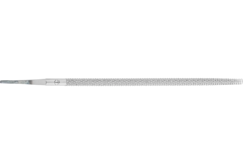Pilnik okrągły zbieżny z nacięciem dookoła. Kształt E wg normy DIN 7263. Wykonanie z chwytem. Do obróbki profili okrągłych i półokrągłych.