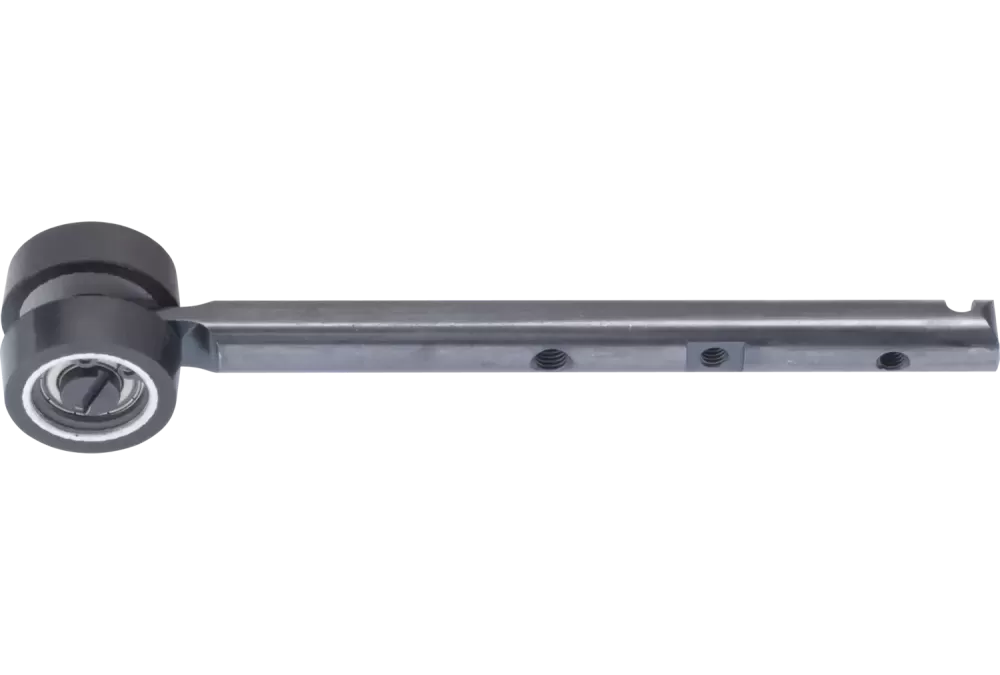 Ramię przystawki szlifierki taśmowej o rozmiarze rolki 23 × 24 mm do taśm o długości 480 mm i szerokości 25 mm.