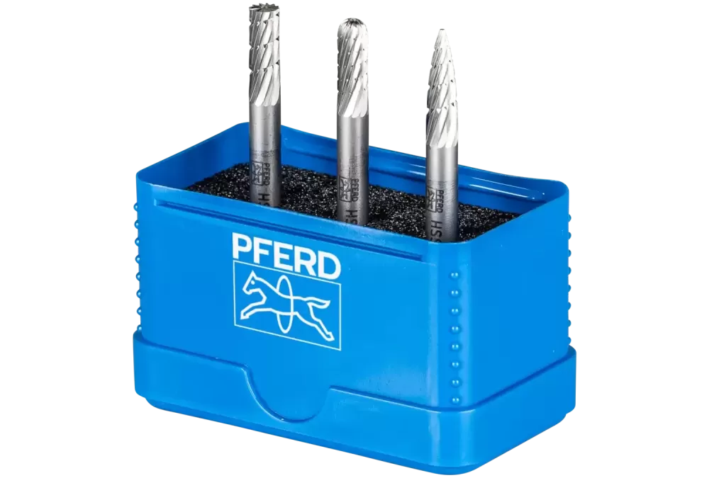 Uzębienie 3 jest wyposażone w wiórołamacze i nadaje się szczególnie do obróbki stali, staliwa i żeliwa. Znajduje zastosowanie w zakresie od 1200 do 7900 obr./min, w zależności od średnicy trzpienia frezarskiego., Zestaw 85 Z3 zawiera trzy trzpienie frezarskie HSS do obróbki precyzyjnej i zgrubnej w najczęściej używanych kształtach i wymiarach. Odporne na pęknięcia opakowanie z tworzywa sztucznego chroni narzędzia przed uszkodzeniem i zabrudzeniem.